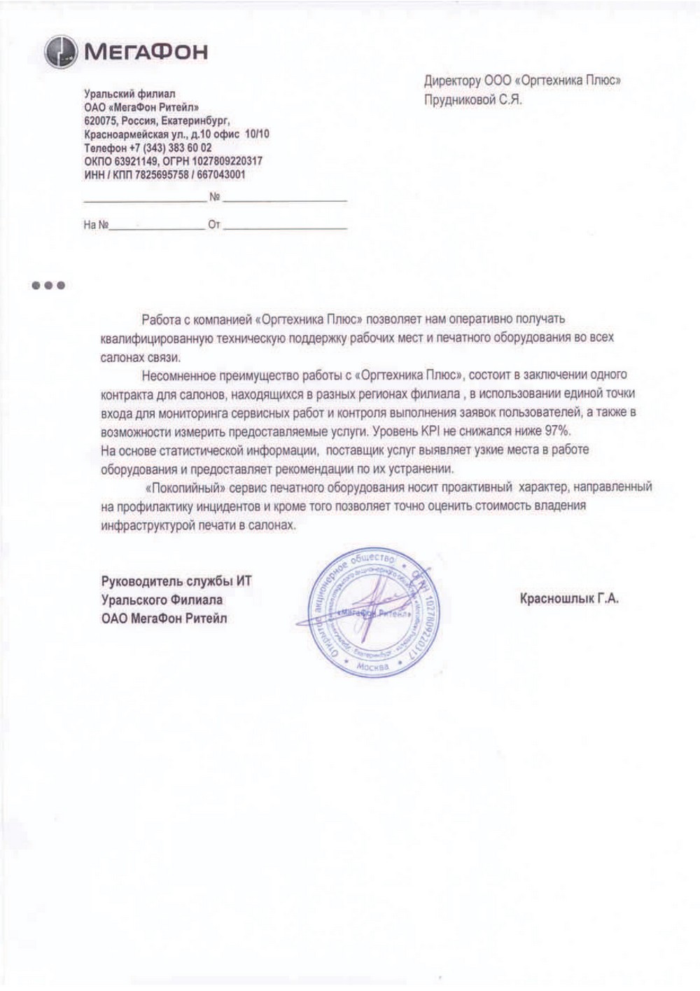 Компания "Оргтехника Плюс" работает на рынке услуг обслуживания офисной техники с 1997 года. Понимая перспективы рынка ИТ аутсорсинга, в далеком 2008 году, одной из первых в стране, компания начинает оказывать, тогда еще малоизвестные в России, централизованные услуги по управлению парком печатной техники и технической поддержке рабочих мест. Главным принципом «Оргтехника Плюс» ставит оказание услуг по месту установки техники, по единым стандартам качества и ценам для всех подразделений клиента, независимо от их географического адреса, в режиме 24*7*365