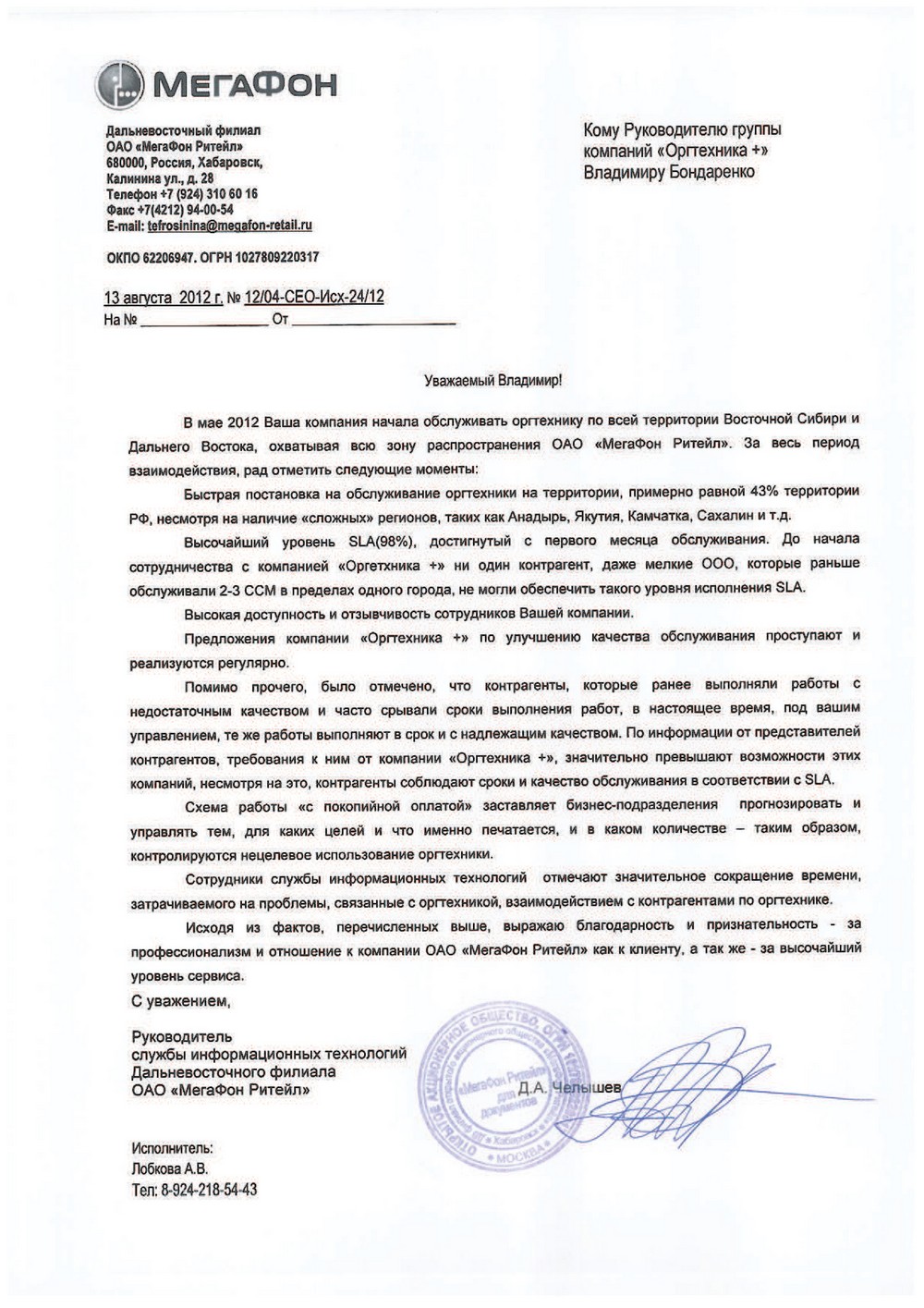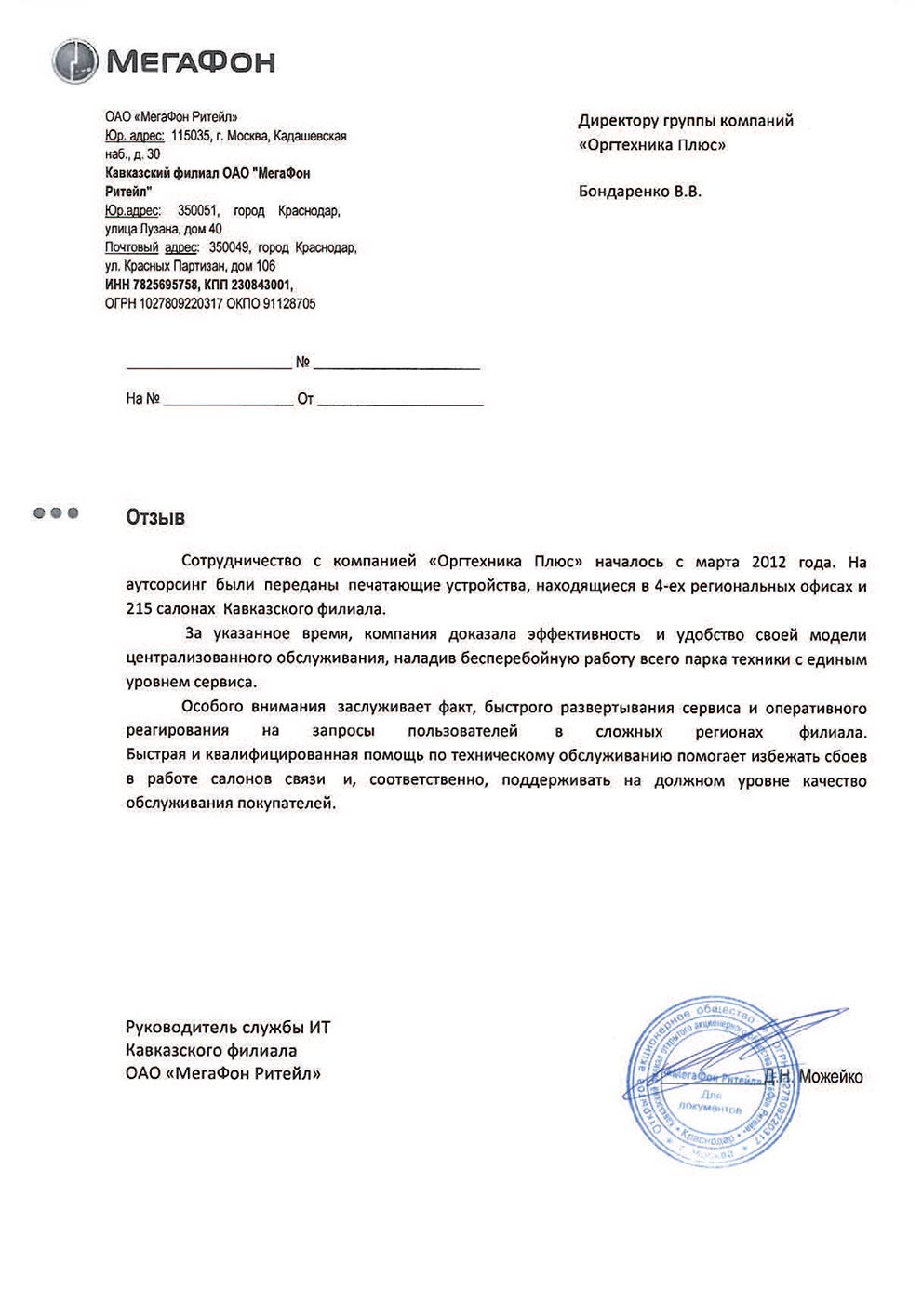 Благодарственные и рекомендательные письма компаний - наших клиентов.